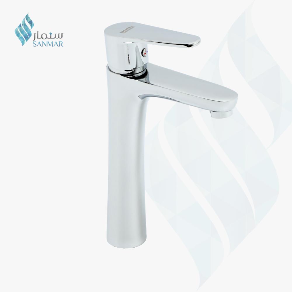 أضف لمسة من الأناقة إلى مغسلتك مع خلاط وهج - ماس (6) الطويل، المصمم ليتناسب مع المغاسل المرتفعة ويوفر تدفق مياه سلس وتحكم دقيق بدرجة حرارة الماء.